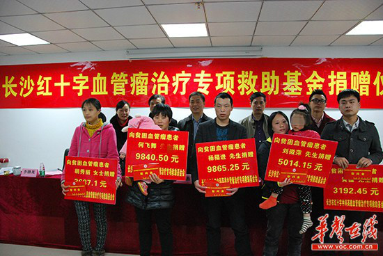 12月10日早上10點(diǎn),寒冷的冬雨淅淅瀝瀝,在長沙市啟華醫(yī)院三樓會(huì)議內(nèi),溫暖卻傳遞在醫(yī)患之間。當(dāng)日,長沙紅十字中科英德血管瘤治療專項(xiàng)救助基金捐贈(zèng)儀式在這里舉行。