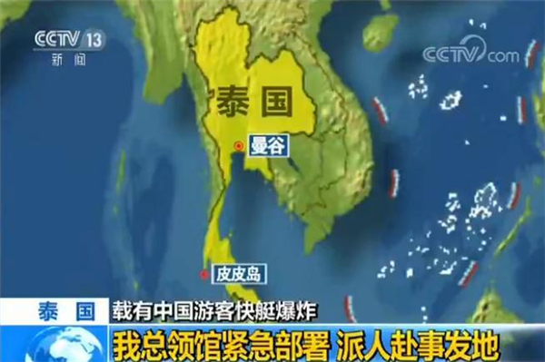 14日,泰國(guó)知名旅游景點(diǎn)皮皮島附近發(fā)生快艇發(fā)動(dòng)機(jī)爆炸事件。事發(fā)快艇上當(dāng)時(shí)共載有27名中國(guó)游客,以及數(shù)名泰國(guó)公民。經(jīng)中國(guó)駐泰國(guó)宋卡總領(lǐng)事館確認(rèn),27名中國(guó)游客已被救上岸。中國(guó)游客都有不同程度受傷,其中5人受重傷,但都沒(méi)有生命危險(xiǎn)。