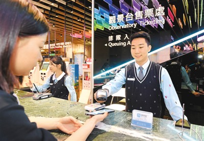 據(jù)介紹,目前以支付寶為代表的大陸移動(dòng)支付平臺(tái)已接入臺(tái)灣各大連鎖便利店、夜市、百貨、餐廳,不僅7-11、全家等連鎖便利店可用支付寶,臺(tái)北寧夏夜市、士林夜市、饒河夜市,臺(tái)中逢甲夜市,高雄六合夜市也實(shí)現(xiàn)了全線支持使用支付寶支付。在臺(tái)北桃園機(jī)場(chǎng),支付寶已覆蓋近九成商家。圖為一名游客使用支付寶購(gòu)買臺(tái)北101大樓門票。