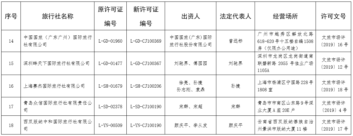 中國網(wǎng)5月31日訊 近日,文化和旅游部公布了新一批獲得出境游業(yè)務(wù)經(jīng)營許可的旅行社名單,此次共18家旅行社入選。