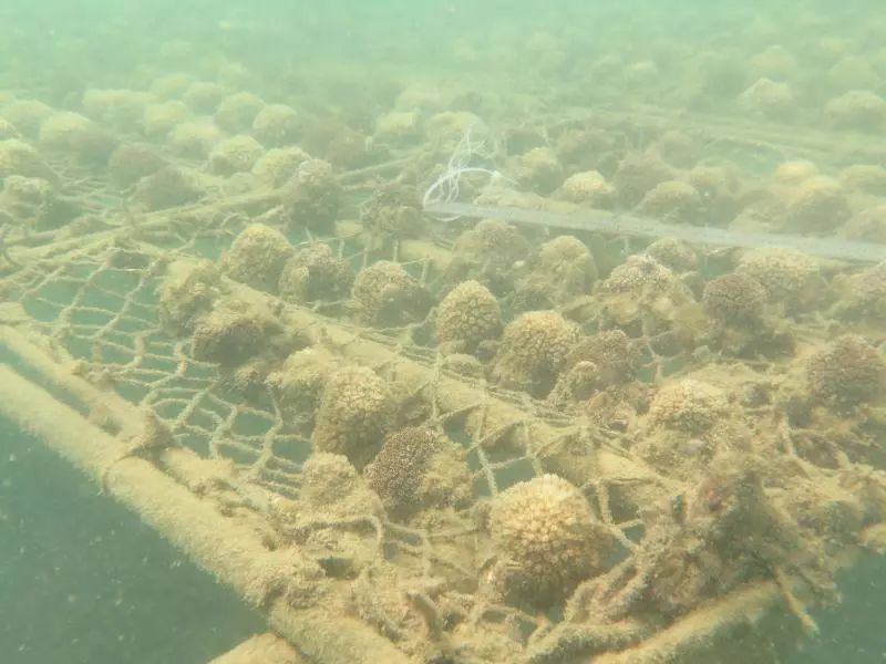 (正在珊瑚苗圃上長大的珊瑚)