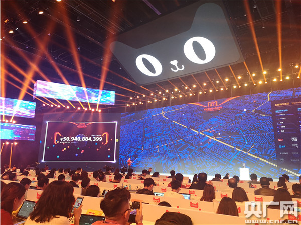 2018天貓雙11活動(dòng)現(xiàn)場(chǎng),成交額持續(xù)攀升中。 央廣網(wǎng)記者 梁爽 攝