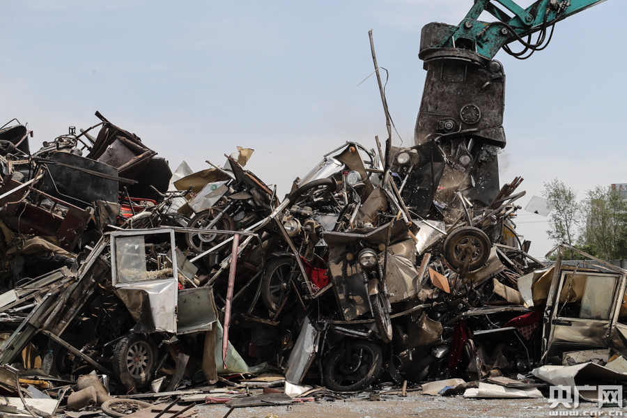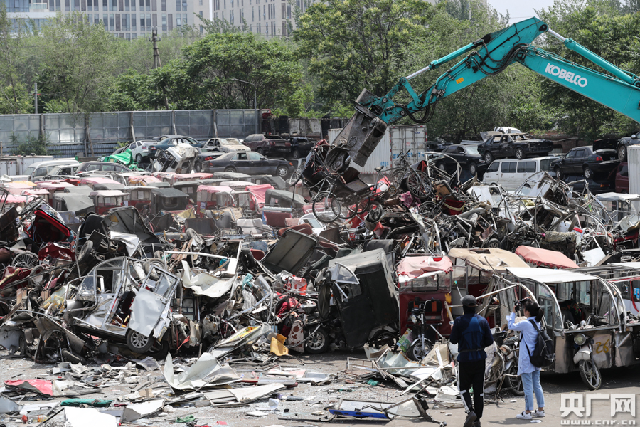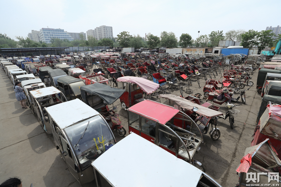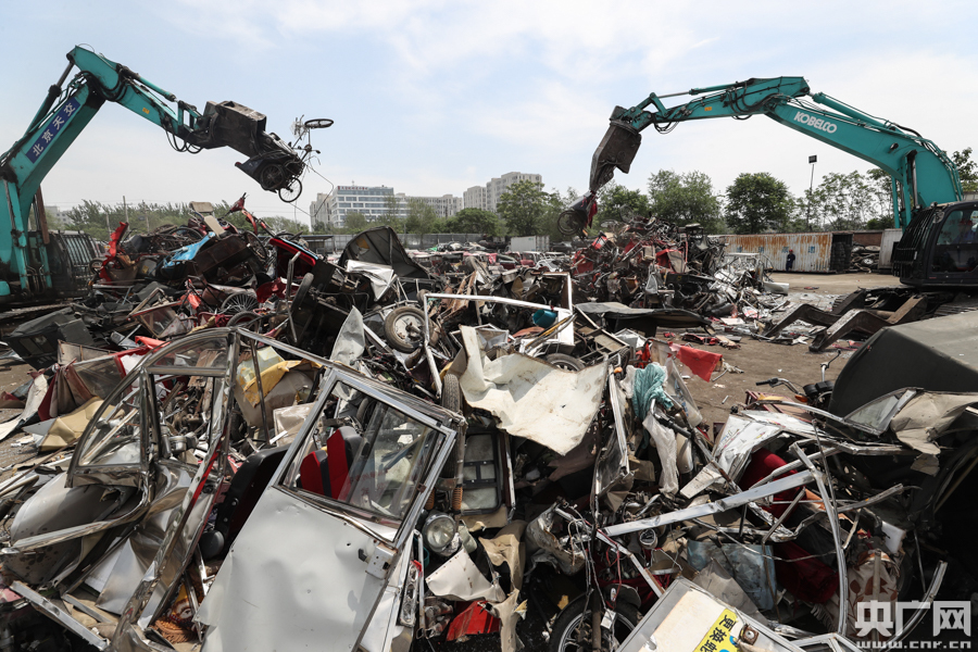 “黑摩的”銷毀現(xiàn)場。(央廣網記者 韓靖 攝)