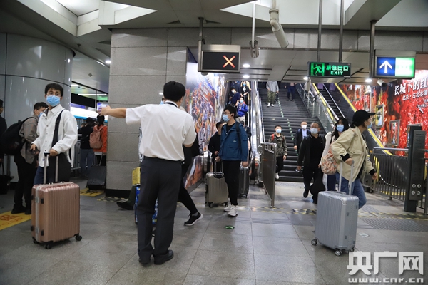 國慶中秋假期接近尾聲,傍晚北京南站迎來返京客流高峰(央廣網(wǎng)記者 張佳琪 攝)