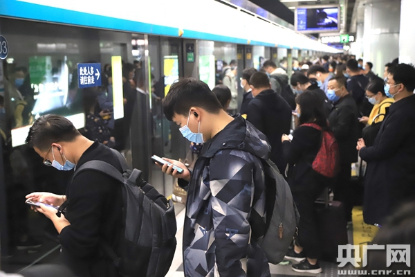 北京地鐵4號線采取延時運營措施應(yīng)對返京大客流(央廣網(wǎng)記者 張佳琪 攝)