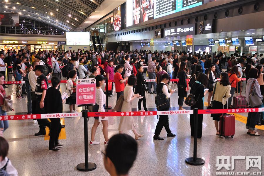 成都機(jī)場(chǎng)今日安排航班946架次 央廣網(wǎng)成都9月30日消息(記者賈宜超 通訊員呂俊明)隨著“十一”黃金周臨近,9月30日,成都機(jī)場(chǎng)共安排航班946架次,比去年同日的939個(gè)航班增加了7個(gè)班次,旅客吞吐量預(yù)計(jì)達(dá)14.6萬(wàn)人次,其中出港旅客7.2萬(wàn)人次,進(jìn)港旅客7.4萬(wàn)人次,總體客流較為平穩(wěn),沒有出現(xiàn)此前預(yù)計(jì)的客流最高峰。 據(jù)介紹,雖然今日成都機(jī)場(chǎng)安排的航班架次不及前兩日,但進(jìn)出港旅客人數(shù)仍在攀升,均比前兩日高出0.6萬(wàn)人次左右,而這主要是由于各航空公司安排了更多的大型飛機(jī)參與運(yùn)營(yíng)。據(jù)預(yù)測(cè),本次客流高峰將持續(xù)到10月2號(hào),明后兩天整體吞吐量還將繼續(xù)維持在高位運(yùn)行狀態(tài)。 為應(yīng)對(duì)“十一”客流高峰,減少旅客在通過(guò)安檢時(shí)排隊(duì)等候時(shí)間,成都機(jī)場(chǎng)在T1航站樓高峰期,以及T2航站樓專門開設(shè)了兩個(gè)女性旅客專用安檢通道;在T2航站樓又增設(shè)了兩個(gè)小件行李旅客安檢專用通道,將極大地提升旅客通檢速度。