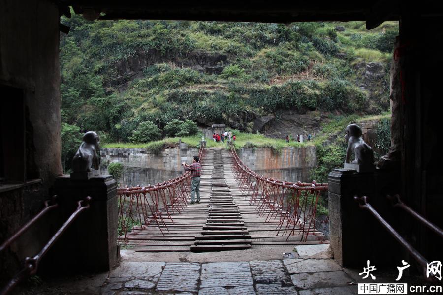 隊員在魯?shù)榭h尋訪鐵過橋(央廣網(wǎng)發(fā) 唐啟榮 攝)