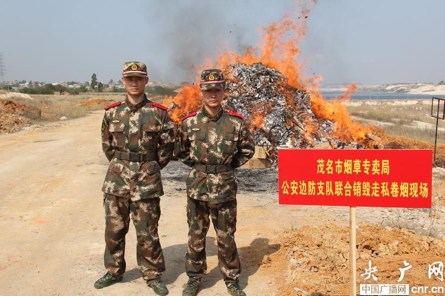 廣東茂名公開(kāi)銷(xiāo)毀110萬(wàn)走私香煙(央廣網(wǎng)發(fā) 陳小飛 攝)