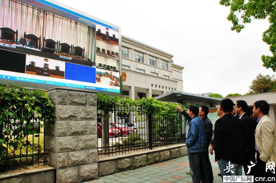 當(dāng)天上午的庭審持續(xù)了一個半小時,該院通過安裝在大門處的LED大屏幕對此案進行了現(xiàn)場直播,不時有路人駐足觀看。該院信息技術(shù)科負(fù)責(zé)人介紹說,該院歷時1個月,完成了LED大屏幕的安裝及調(diào)試工作,大屏幕面積12平方米,畫面、音質(zhì)清晰,便于觀看。
