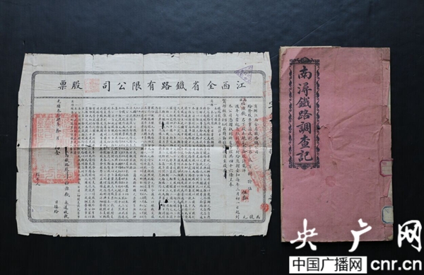 央廣網(wǎng)南昌6月6日消息(記者胡嘯 通訊員余揚、曾勤生)近日,南昌市檔案館為籌建特藏庫在對館藏檔案進行甄選時,又發(fā)現(xiàn)了一張清末南潯鐵路股票和一冊《南潯鐵路調(diào)查記》。