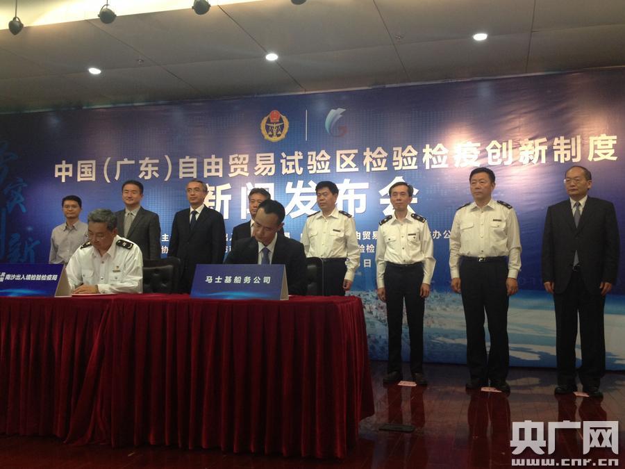 央廣網(wǎng)廣州11月5日消息(記者何偉奇 通訊員岳儉宣)廣東出入境檢驗檢疫局與廣東省自貿辦今天在廣州南沙港聯(lián)合召開自貿區(qū)檢驗檢疫創(chuàng)新制度新聞發(fā)布會,發(fā)布支持廣東自貿區(qū)發(fā)展的11項檢驗檢疫創(chuàng)新制度。