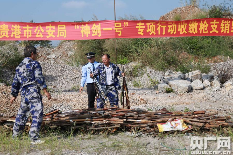11月23日,廣西統(tǒng)一銷毀獵槍、氣槍、火藥槍、射釘槍及其他自制槍支共4948支,仿真槍11905支,管制刀具3538把,弩152把。