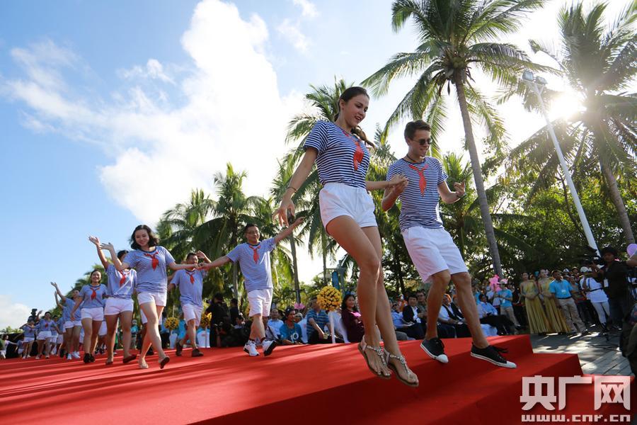 在開(kāi)幕式上,兩屆“第一美差”冠軍、海南國(guó)際旅游島形象大使趙妤佳(2013年)、曾譽(yù)瑩(2014年)攜“第一美差天團(tuán)”華美登場(chǎng),浪漫演繹唯美婚紗秀開(kāi)場(chǎng);集聚了泰國(guó)、印度等“一帶一路”相關(guān)國(guó)家婚俗與漢唐黎苗婚俗的展示秀也在現(xiàn)場(chǎng)掀起陣陣美麗風(fēng)情;面向全球征選的19對(duì)幸運(yùn)新人甜蜜亮相現(xiàn)場(chǎng),濃濃的幸福氛圍在天涯海角上空洋溢,共同為“2015第十九屆中國(guó)?三亞天涯海角國(guó)際婚慶節(jié)”拉開(kāi)精彩帷幕。