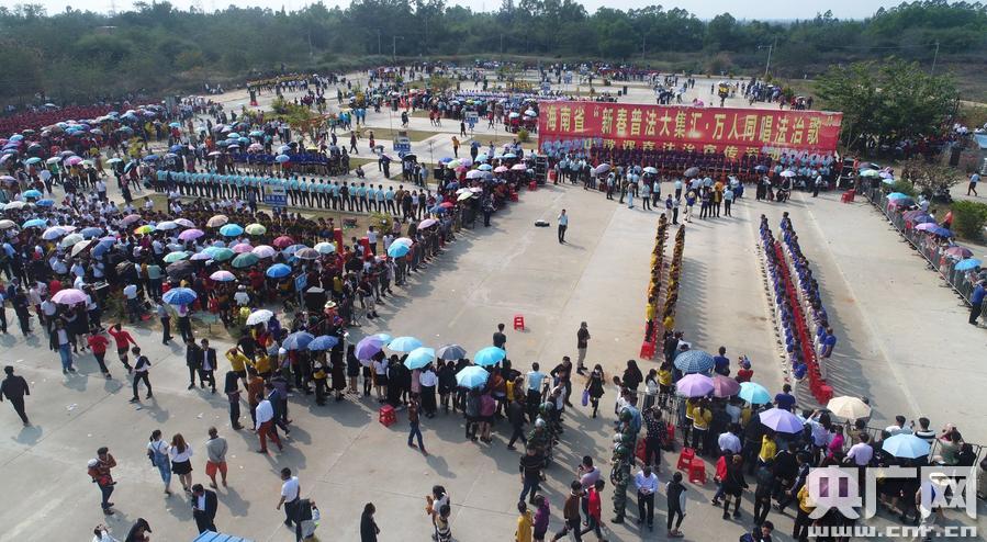 央廣網(wǎng)儋州2月17日消息(記者 吳媚苗 通訊員 馮蘭田)為在春節(jié)期間向全國(guó)人民展示海南特色文化、展現(xiàn)冬季海島風(fēng)情并深入推進(jìn)海南省“七五”普法工作,助力“法治海南”建設(shè),海南省司法廳、省普治辦聯(lián)合儋州市政府精心籌劃了2月17日(正月初二)儋州市木棠鎮(zhèn)“新春普法大集匯·萬(wàn)人同唱普法歌”法治宣傳教育活動(dòng),向全國(guó)人民唱響海南“法治好聲音”。