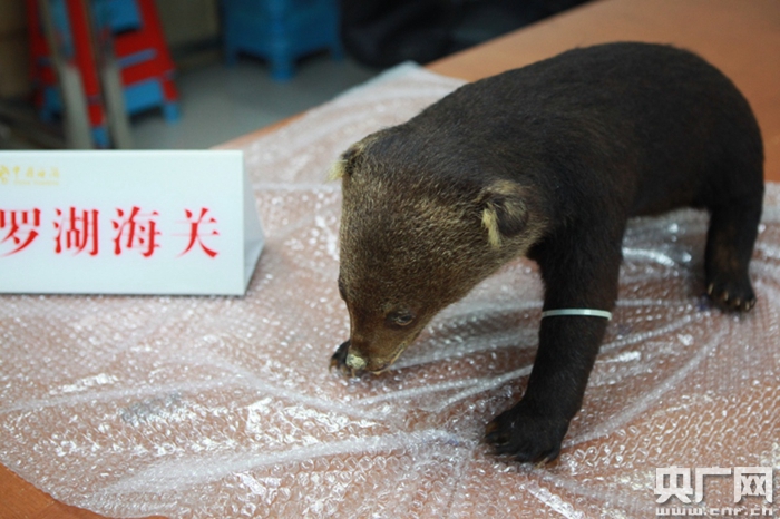羅湖海關(guān)關(guān)員介紹到:“這只小熊看起來憨態(tài)可掬,相當可愛?涩F(xiàn)在被殘忍殺害,只剩軀殼制成標本,真是令人感到痛惜!”