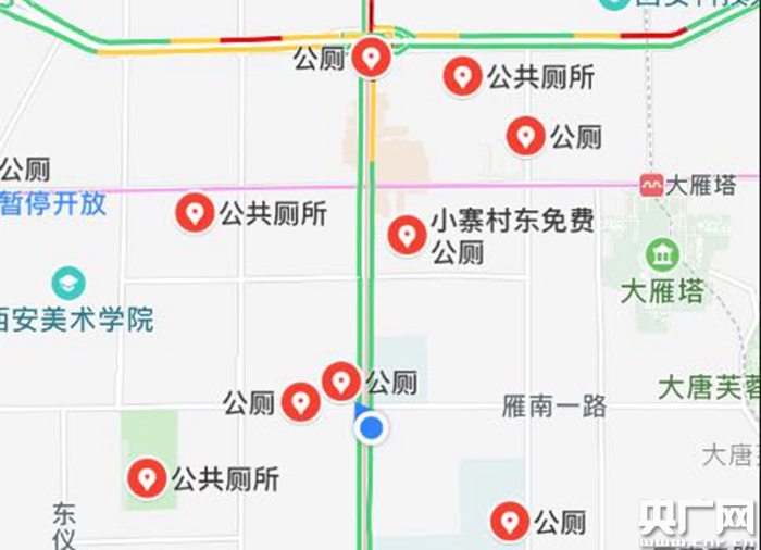 百度地圖上西安市雁塔區(qū)部分公廁位置(央廣網(wǎng)記者 張美 攝)