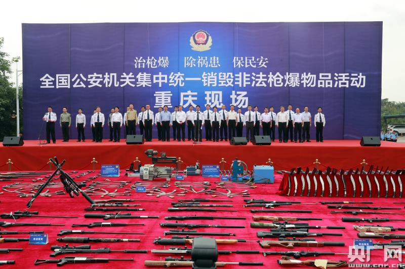 據(jù)了解,當天上午10時,公安部副部長孫力軍在重慶主現(xiàn)場宣布全國公安機關(guān)集中統(tǒng)一銷毀非法槍爆物品活動正式啟動。本次集中統(tǒng)一銷毀活動中,黑龍江齊齊哈爾、江蘇南京、湖北武漢、廣東廣州、云南昆明等5地同時設(shè)立中心現(xiàn)場,全國其他省區(qū)市自行確定分現(xiàn)場,同步組織開展集中銷毀活動。