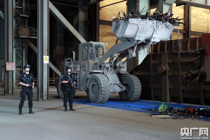 非法槍爆物品投入熔爐銷毀(央廣網(wǎng)發(fā) 重慶市公安局供圖)