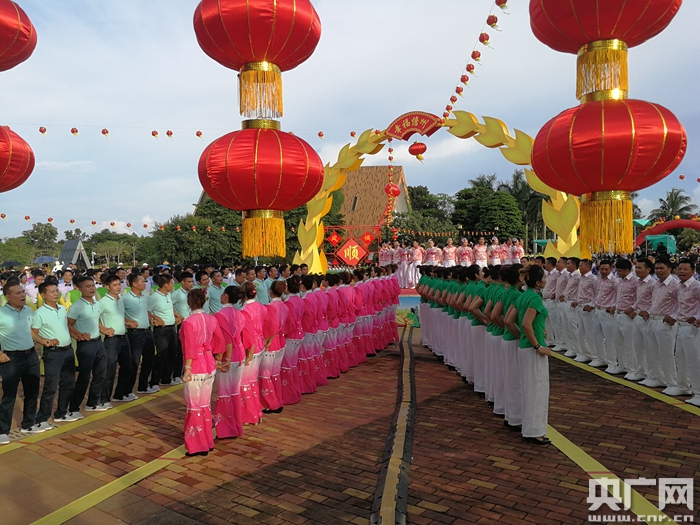 央廣網(wǎng)儋州9月23日消息(記者朱永)9月22日下午,在海南省儋州市光村雪茄風(fēng)情小鎮(zhèn)上,來(lái)自各村鎮(zhèn)的千余名群眾,組成了五十多支調(diào)聲隊(duì)伍,用地方獨(dú)特的藝術(shù)風(fēng)格來(lái)慶祝首屆“中國(guó)農(nóng)民豐收節(jié)”的到來(lái)。