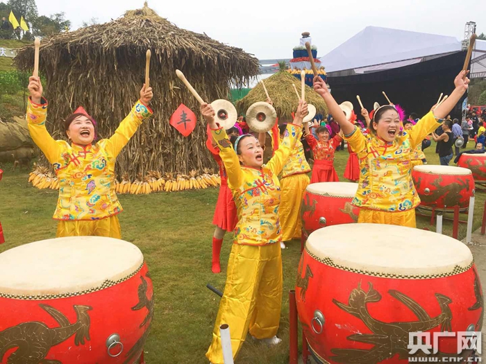 農(nóng)民擊鼓慶祝豐收(央廣網(wǎng)記者 趙聰聰 攝)