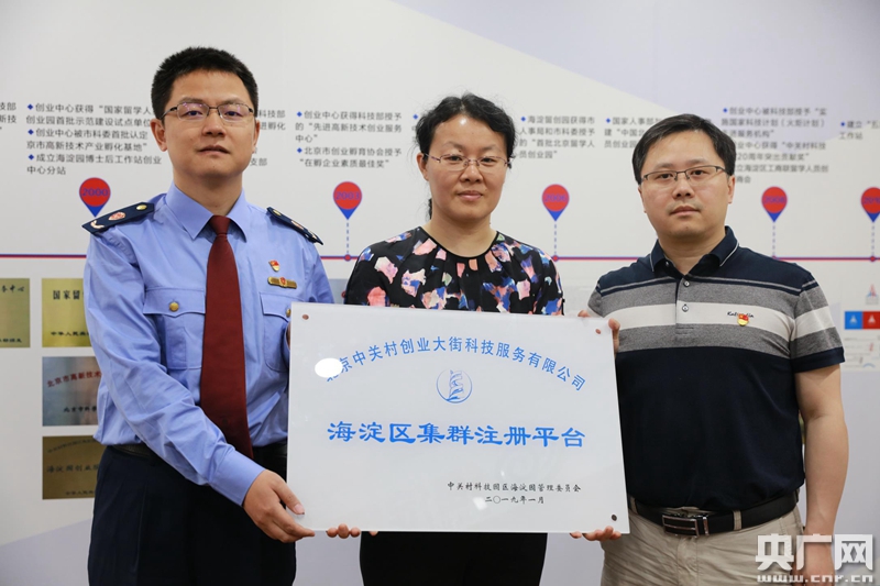 北京海淀發(fā)出全市首份“集群注冊(cè)”營(yíng)業(yè)執(zhí)照。劉天思攝