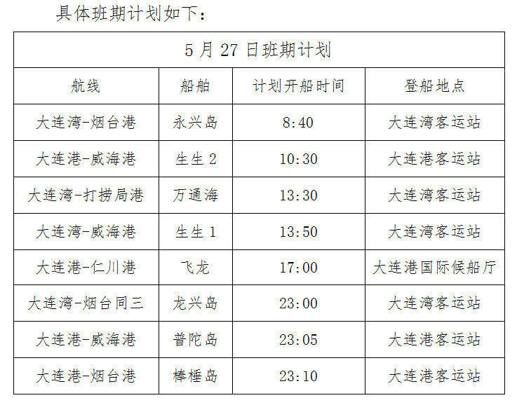 原計(jì)劃8點(diǎn)20分由大連港開往長?h的獐子島輪和原計(jì)劃9點(diǎn)30分由大連港開往煙臺(tái)的萬榮海輪停航;原計(jì)劃21點(diǎn)35分由大連灣港開往煙臺(tái)的龍興島輪延至23點(diǎn)開航,原計(jì)劃21點(diǎn)30分由大連港開往威海的普陀島輪延至23點(diǎn)05分開航,原計(jì)劃22點(diǎn)30分由大連港開往煙臺(tái)的棒棰島輪延至23點(diǎn)10分開航。其它航班正常,提醒旅客注意調(diào)整出行安排。