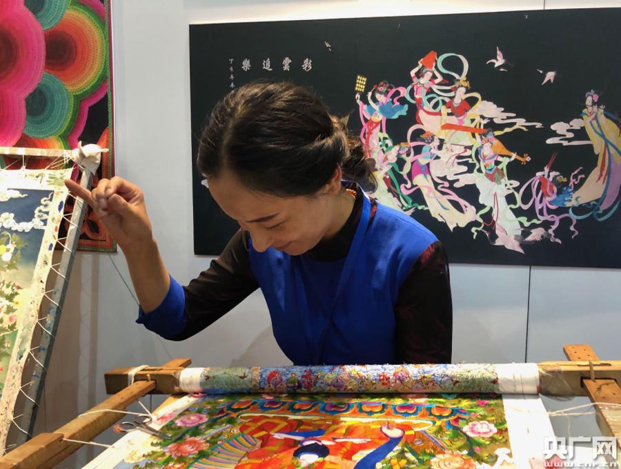 在青洽會的“深山集市”展位,一幅色彩豐富、做工精細的唐卡成為了全場最吸睛的作品。這幅唐卡作品是青海省海南州五彩藏繡藝術有限公司的4位繡娘耗時2年繡成。公司負責人拉毛葉忠告訴記者,該作品售價在60萬元人民幣,是這次深山集市展銷的工藝品中價格最高的:“這幅唐卡作品運用了六七百種不同色彩的絲線繡制而成。金絲參雜其中,同時運用疊層繡法,使整幅作品更加具有層次感。”