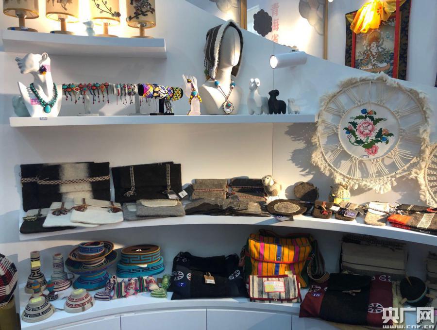 第二十屆青洽會上“深山集市”展銷的部分手工藝品(央廣網記者 劉澤耕 攝)
