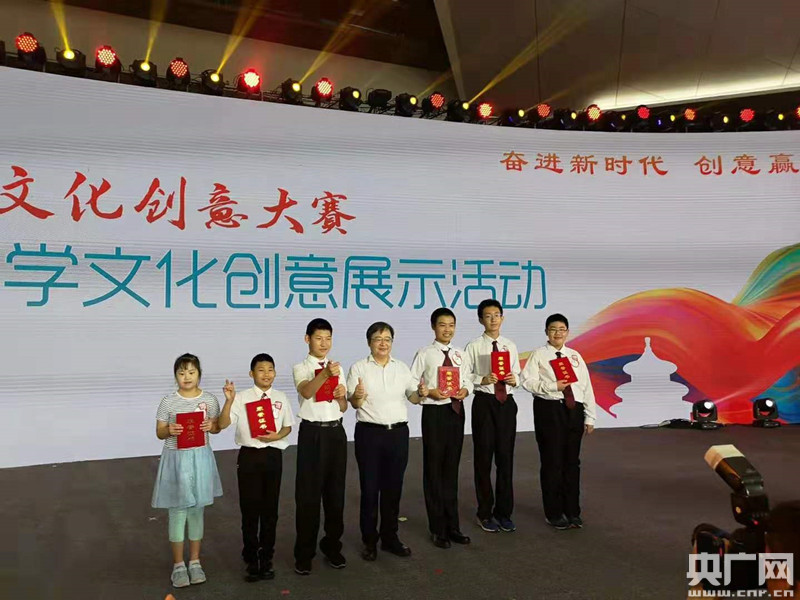 央廣網(wǎng)北京7月22日消息(記者劉天思 通訊員劉琳)青春的面孔、昂揚(yáng)的步伐、自信的笑容,100余名中小學(xué)生經(jīng)過(guò)多場(chǎng)次的路演比拼,終于踏上了專屬于他們的“明星紅毯”,充分展示出新時(shí)代中國(guó)少年的創(chuàng)意風(fēng)采。7月21日,歌華有線杯·2019北京文化創(chuàng)意大賽“亦莊控股·首屆中小學(xué)文化創(chuàng)意展示活動(dòng)”終評(píng)暨頒獎(jiǎng)儀式在北京經(jīng)濟(jì)技術(shù)開發(fā)區(qū)精彩落幕。北京市委宣傳部副巡視員、市文促中心主任梅松,北京經(jīng)濟(jì)技術(shù)開發(fā)區(qū)工委宣傳部常務(wù)副部長(zhǎng)金光澤,北京時(shí)間有限公司總經(jīng)理金鵬等領(lǐng)導(dǎo)嘉賓出席頒獎(jiǎng)典禮并為獲獎(jiǎng)的優(yōu)秀作品、指導(dǎo)教師、學(xué)校和組織單位頒發(fā)獎(jiǎng)杯獎(jiǎng)狀。