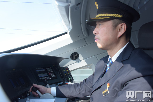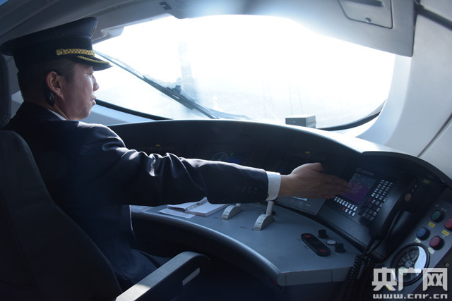 老楊駕駛的高鐵在時速350公里運行中(央廣網發(fā) 白玉姝 攝)