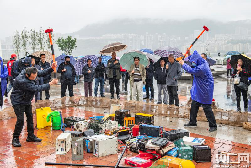 重慶開展打擊非法捕撈器具集中銷毀活動(央廣網(wǎng)發(fā) 萬州區(qū)供圖)