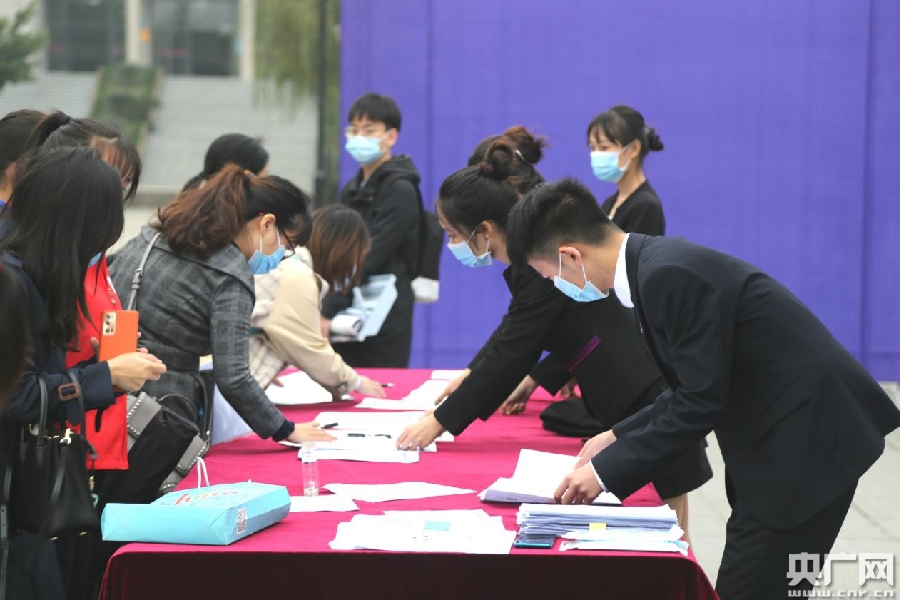 央廣網(wǎng)成都11月13日消息(記者賈宜超)11月12日,由四川省人力資源和社會(huì)保障廳、四川省教育廳主辦的“智匯天府”公共招聘進(jìn)校園大型秋季雙選會(huì)在成都銀杏酒店管理學(xué)院舉行。來自酒店旅游、智能制造、新媒體、金融、教育培訓(xùn)等不同行業(yè)的約300家單位,提供招聘崗位8500余個(gè),共吸引該校及周邊高校2500余名2021屆畢業(yè)生參與。