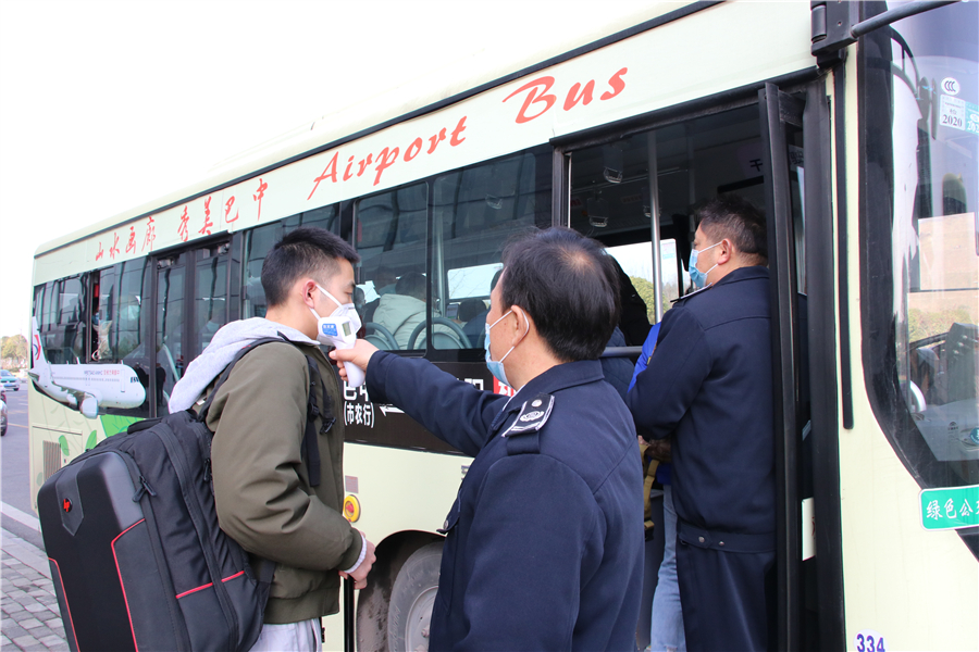 乘坐擺渡車時進行體溫檢測(央廣網(wǎng)發(fā) 四川交投供圖)