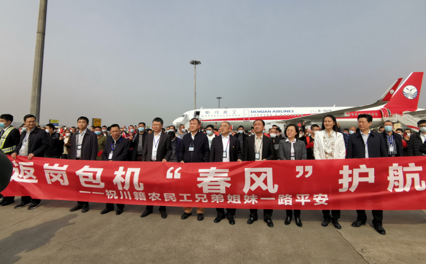 此外,為全力保障農民工能順利乘坐專機返崗務工,四川省人力資源社會保障廳還協調機場開辟了專屬通道,專設農民工值機柜臺、安檢通道、候機等候區(qū)。各級人社部門精準摸排農民工返崗需求,出行前為每名乘機農民工開展農民工防疫健康教育、天府通健康碼查驗和行前體溫監(jiān)測,配備人社專員、公安干警和醫(yī)護人員,全程提供服務保障。四川省政府各駐外辦安排了到達接站和交通接駁服務,確保農民工“出得了家門、上得了車門、進得了廠門”。