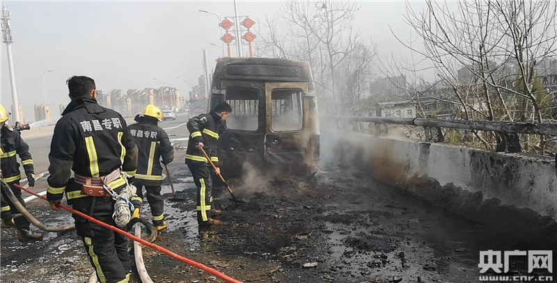 央廣網(wǎng)南昌3月26日消息(記者熊方 李竟成 通訊員章斌 楊晨)3月26日14時29分,在江西南昌英雄大橋上,一輛依維柯小客車行駛途中突然起火,車上有液體流出導(dǎo)致火勢較大,現(xiàn)場濃煙滾滾并伴有爆炸聲響,火災(zāi)未造成人員傷亡。
