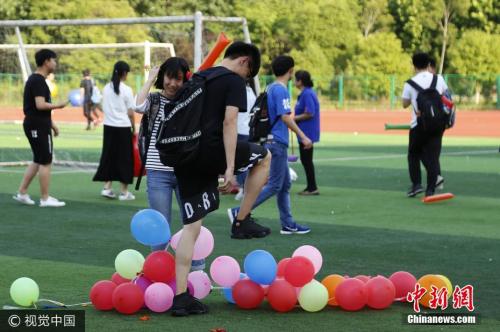 資料圖:高三學(xué)生參與趣味運(yùn)動(dòng)會(huì)減壓。 中新社記者 劉文華 攝