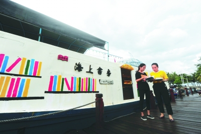 市民在海南三亞西島上的“海上書房”看書。 新華社發(fā)