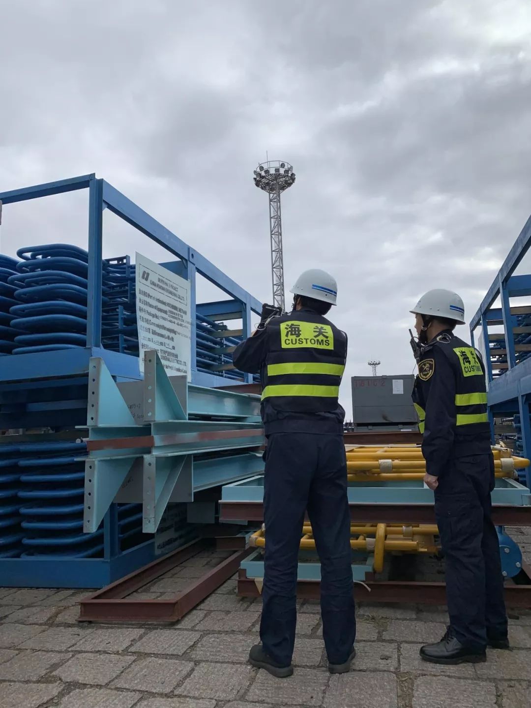 11月29日下午,吳淞海關(guān)查檢二科又完成一批“一帶一路”貨物查驗(yàn)。這批貨物計(jì)劃出口越南,服務(wù)于越南沿海二期2×660MW超臨界燃煤發(fā)電項(xiàng)目,包括鍋爐零件、等厚滾軸篩、燈桿預(yù)埋件、電纜橋架等。貨物共計(jì)197件,重達(dá)588.3噸,在場地上大片鋪開。查檢人員帶著設(shè)備,有序地在鋼架、管組等各種設(shè)備和配件中來回穿行,很快就完成了查檢作業(yè)。隨后,貨物將由SEIYO EXPLORER號(hào)輪運(yùn)往胡志明市,項(xiàng)目建成后,可為緩解當(dāng)?shù)毓╇娋o張局面作出貢獻(xiàn),為越南的社會(huì)經(jīng)濟(jì)發(fā)展提供安全、清潔的能源保障。