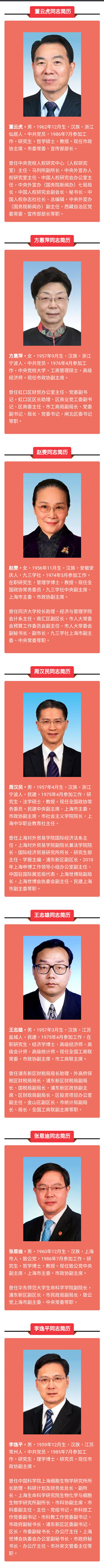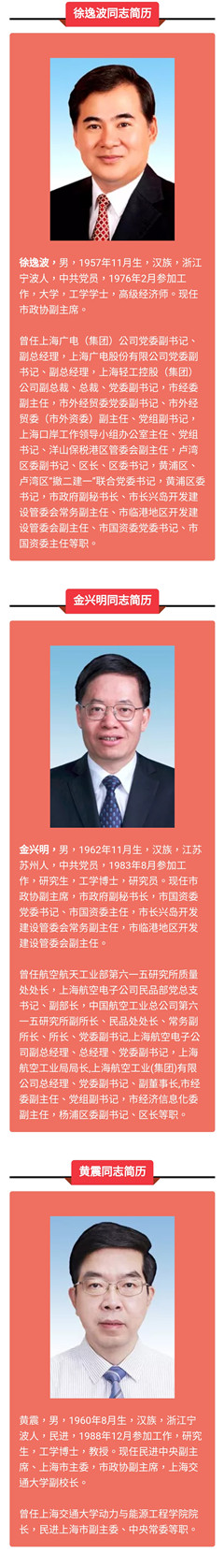 以下是新一屆上海市政協(xié)主席、副主席簡歷: