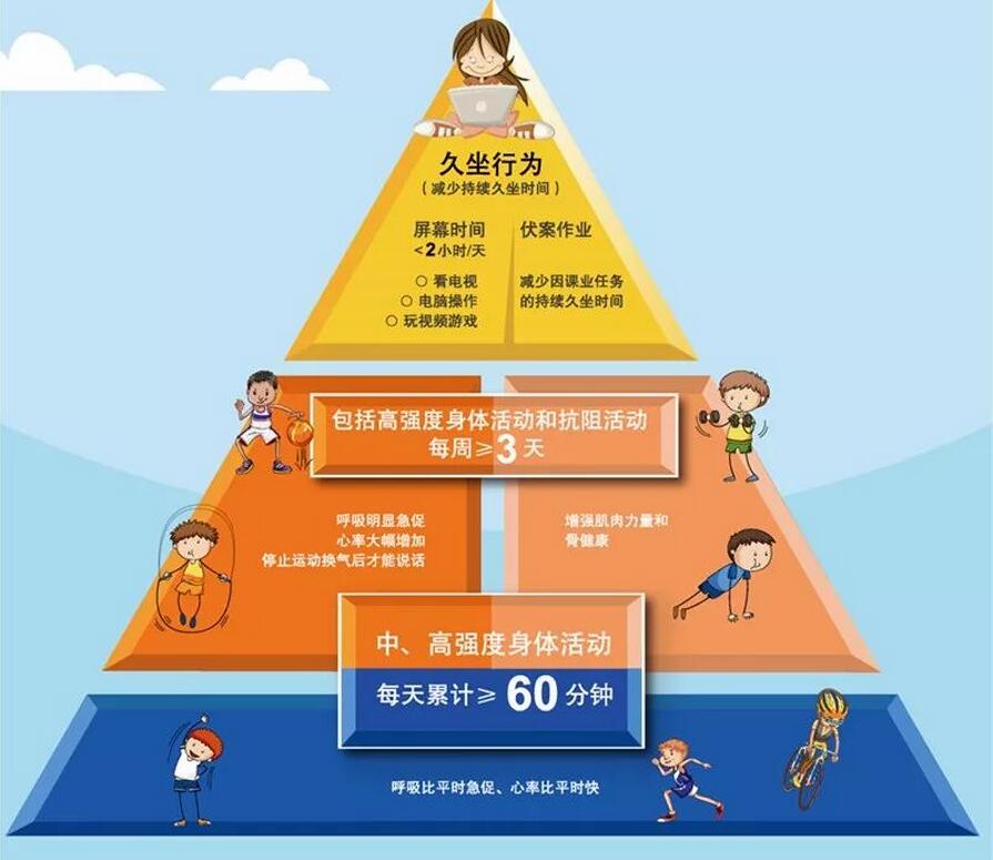 除身體活動的每日推薦量之外,本次指南還專門強調(diào)了久坐行為對健康的危害。為此,指南特別建議在保證每天60分鐘中高強度運動時間以外,兒童青少年每日屏幕時間應限制在2小時內(nèi),并減少持續(xù)久坐行為,在課間休息時應進行適當?shù)幕顒印?/div>