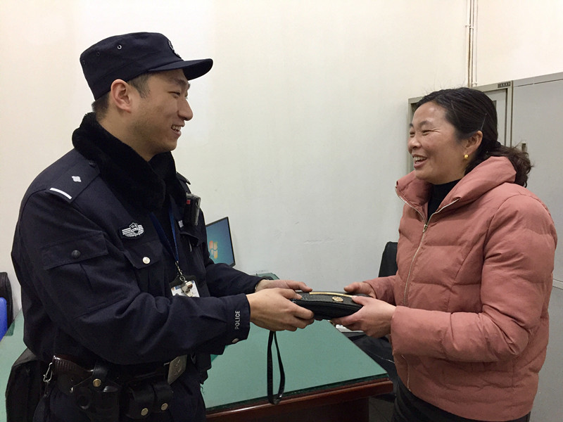 圖:蘇州站派出所民警將裝有一萬余元的挎包還給失主女士
