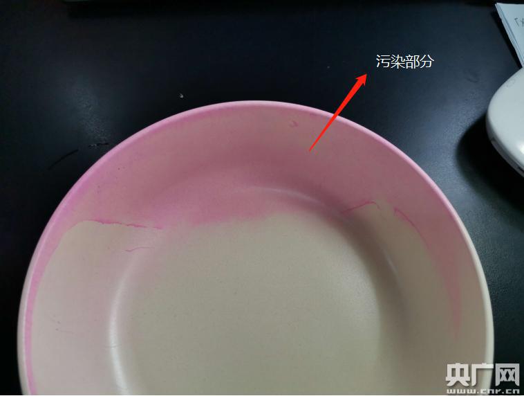密胺類餐具時常出入廚房,免不了在濕熱環(huán)境下放置或使用,“耐高溫”“不易碎”等常常成為商家宣傳的“賣點”,耐濕熱性主要考核的就是產(chǎn)品在濕熱環(huán)境下的品質(zhì)。另外,日常使用中,食物的顏色、殘渣等會沾染在餐具上,餐具到底耐不耐臟,也是消費者關(guān)心的一個方面。本次比較試驗結(jié)果顯示,耐濕熱測試后,有5件樣品產(chǎn)生裂紋,其中4件為竹纖維餐具,1件為普通密胺餐具,如標(biāo)稱由廣州簡米餐具有限公司生產(chǎn)的網(wǎng)紋山水8.5英寸面碗,經(jīng)相關(guān)測試后,邊緣出現(xiàn)裂紋(詳見圖二);4件樣品的耐污染性較差,其中3件為竹纖維餐具,1件為普通密胺餐具,如標(biāo)稱由安徽輕工國際貿(mào)易股份有限公司生產(chǎn)的天然竹纖維多用淺碗,經(jīng)相關(guān)測試后,有明顯污染(詳見圖三)。