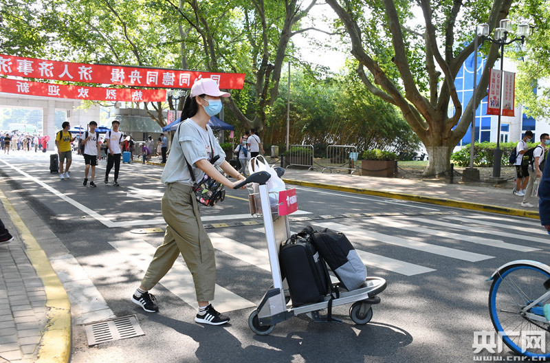 新生使用機(jī)場(chǎng)集團(tuán)免費(fèi)提供的愛心行李小推車(央廣網(wǎng)發(fā) 同濟(jì)大學(xué)提供)