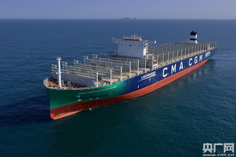 世界首艘23000TEU雙燃料動(dòng)力集裝箱船“達(dá)飛雅克·薩德”號(hào)(央廣網(wǎng)發(fā) 中船集團(tuán)提供)