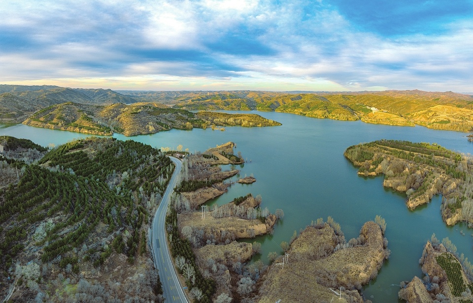 12月2日,山西省晉中市左權(quán)縣清漳河國家濕地公園石匣庫區(qū)天藍(lán)水清,與蜿蜒穿行的現(xiàn)代化公路共同繪就冬日美景。(張文軍攝)