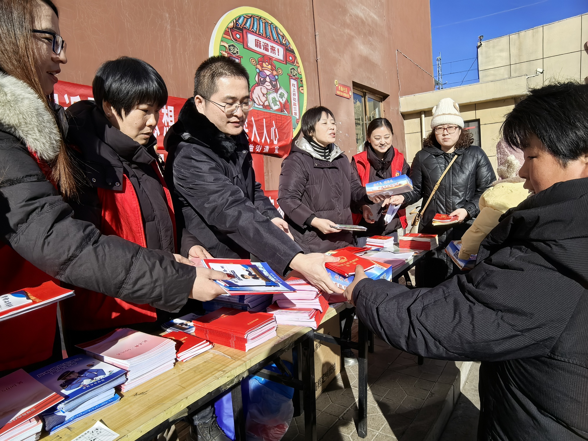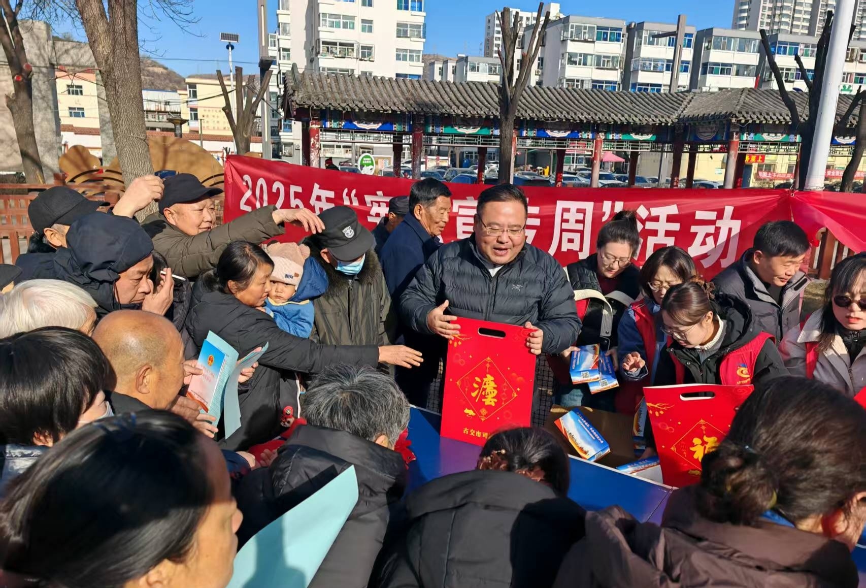 活動(dòng)突破傳統(tǒng)模式,發(fā)放法治春聯(lián)、便民購(gòu)物袋等宣傳品(古交市新時(shí)代文明實(shí)踐服務(wù)中心供圖)
