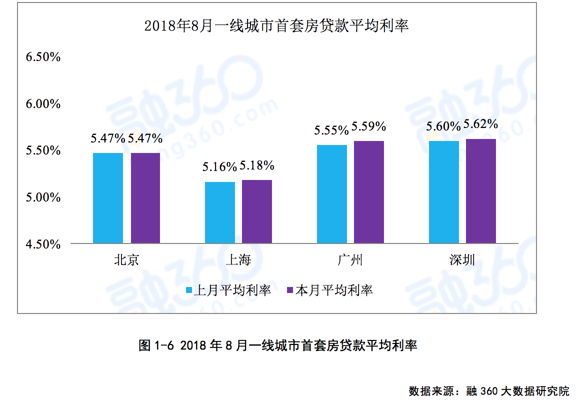融360監(jiān)測(cè)數(shù)據(jù)顯示,2018年8月全國(guó)首套房貸款平均利率為5.69%,相當(dāng)于基準(zhǔn)利率1.161倍,環(huán)比上升0.35%,同比去年8月利率5.12%上升11.13%,為2017年1月以來(lái)連續(xù)20個(gè)月上漲。