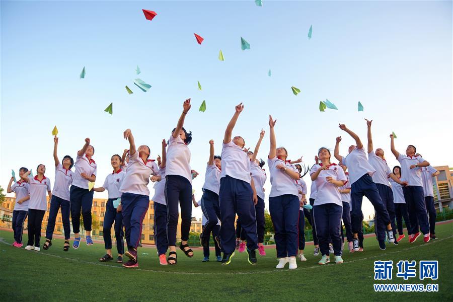 6月2日,河北省衡水市冀州中學(xué)高三學(xué)生放紙飛機,舒緩心情。