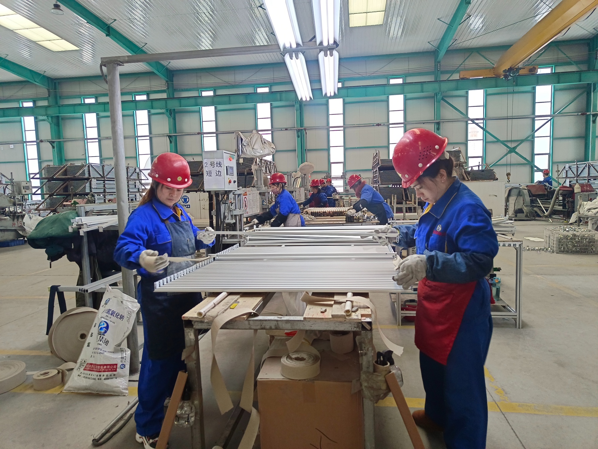 銘帝集團有限公司工作人員正在生產(chǎn)鋁合金窗框