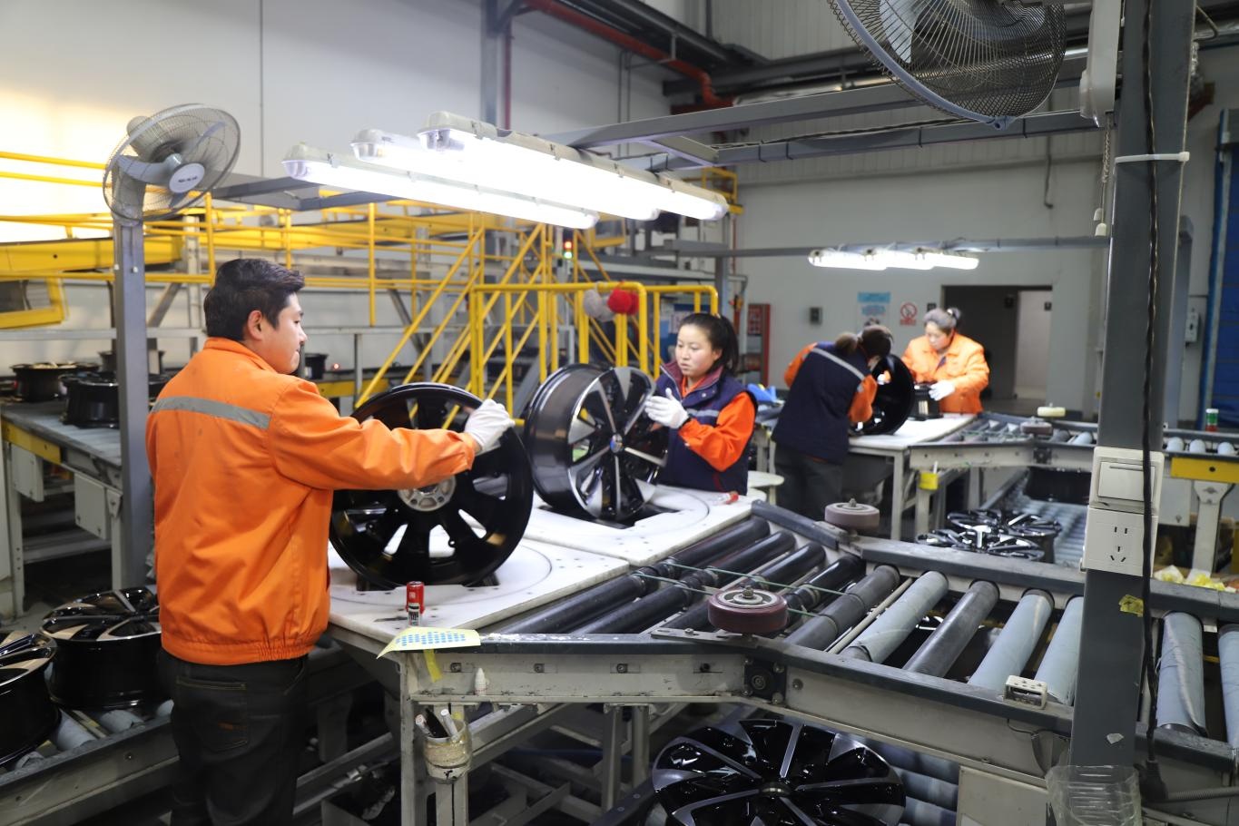 陜西達美輪轂有限公司工作人員正在進行鋁輪轂品質(zhì)終檢